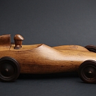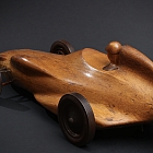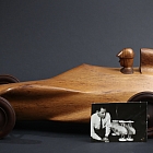 This spectacular wooden sculpture represents a prototype racing car created in the 1950s by the Italian designer Bosato, a figure now rediscovered within the post-war automotive design landscape. Meticulously shaped, this piece served as a wind-tunnel study model, intended to analyze aerodynamic penetration and airflow balance for high-performance vehicles.