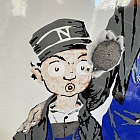 He represents a wine delivery man carrying 24 bottles, quickly becoming very popular