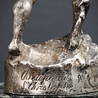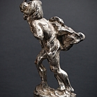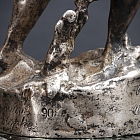 Silvered bronze depicting Saint Christopher carrying the Christ Child, conceived as an automobile mascot at the dawn of the automotive era.